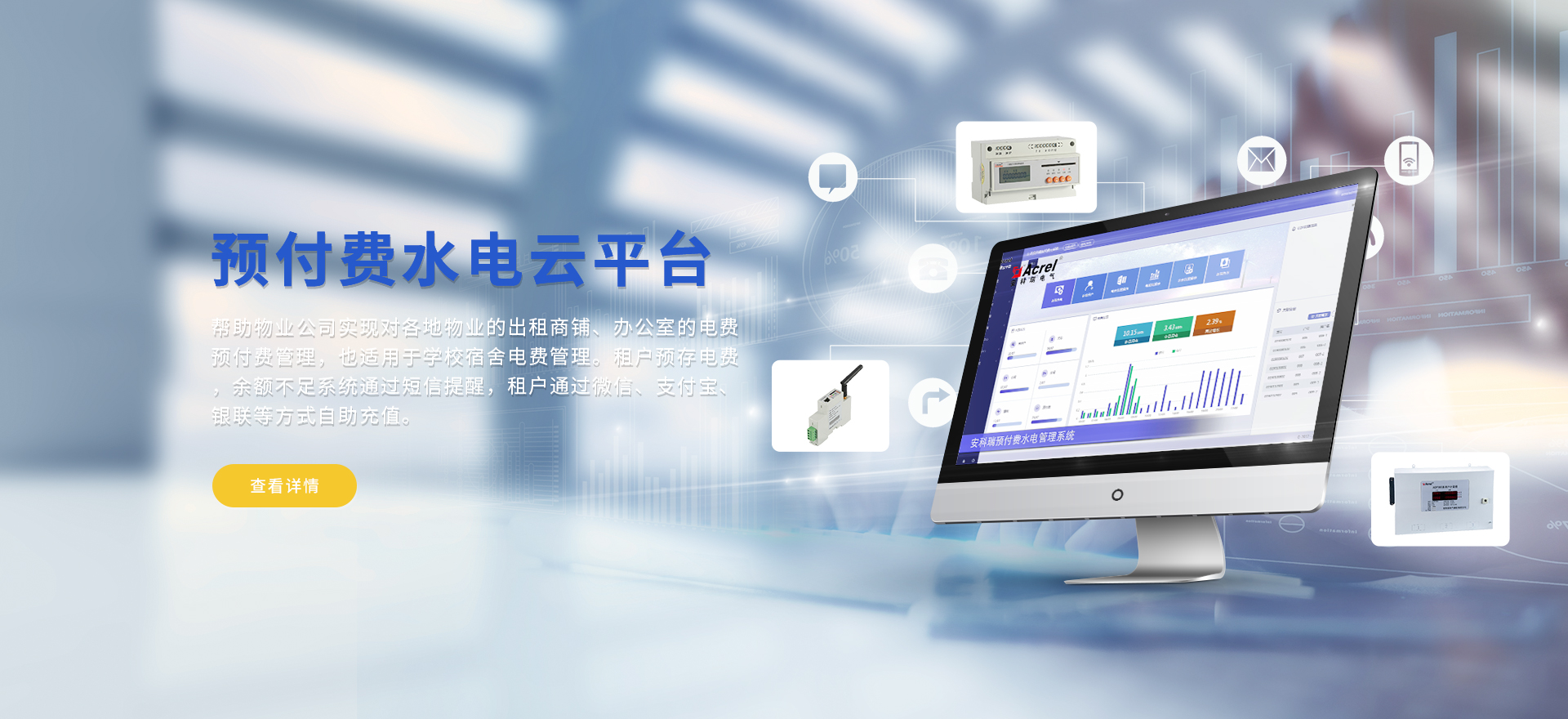 安科瑞提供的解決方案包括Acrel-EIoT能源物聯網云平臺、變電所運維云平臺、安全用電管理云平臺、環保用電監管云平臺智慧消防云平臺、能源管理云平臺、工業企業能源管控平臺、遠程預付費云平臺餐飲油煙監管云平臺、電動汽車/電瓶車充電樁收費管理云平臺、電力監控/無線測溫系統、電能質量治理系統、電氣火災監控系統、消防設備電源監控系統防火門監控系統、應急照明和疏散指示系統、智能照明控制系統、醫用隔離電源絕緣監測系統等,幫助用戶實現能源智能化、可視化、精細化管理,提高用能效率和用能安全,為企業節能降耗和實現能源數字化建設提供數據服務。